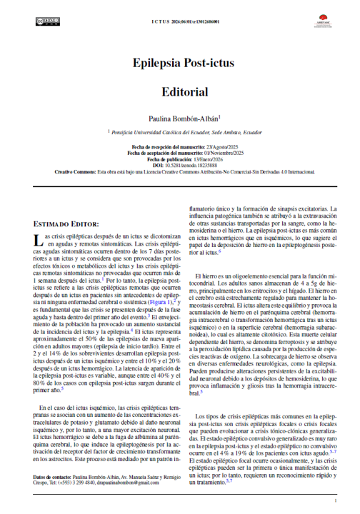 Editorial sobre "Epilepsia Post-ictus" presentada en el volumen 6 número 1 de 2026 de Ictus.