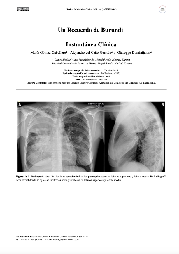 Instantánea clínica sobre "Un Recuerdo de Burundi" publicado en el volumen 10 número 3 de Revista de Medicina Clínica.