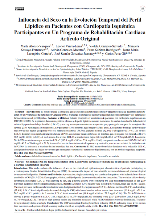 Copyright (c) 2025 Marta Alonso-Vázquez, Leonor Varela-Lema, Violeta Gonzalez-Salvado, Manuela Sestayo-Fernández, Adrián González-Maestro, Paula Subirán-Rodriguez, Joana Maria Laranjeira-Correia, José Ramón Gonzalez-Juanatey, Carlos Peña-Gil